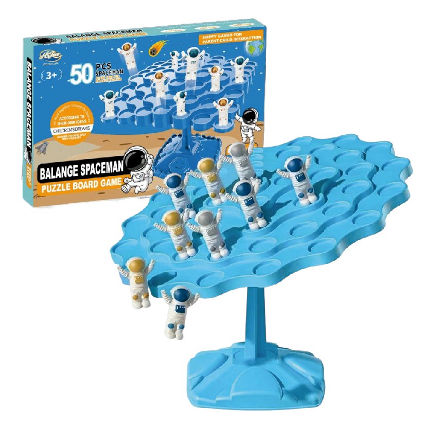 Entretenido juego de mesa que reta a los niños a mantener el equilibrio mientras colocan astronautas sobre