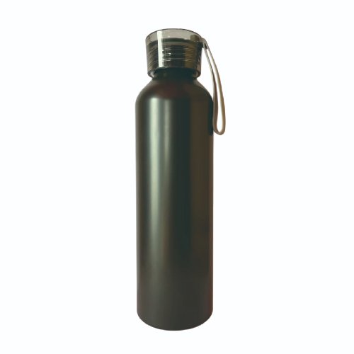 Botella de 600ml de capacidad, ideal para el transporte ligero de líquidos. Fabricada en aluminio, un material ligero y resistente, acabado en color negro.