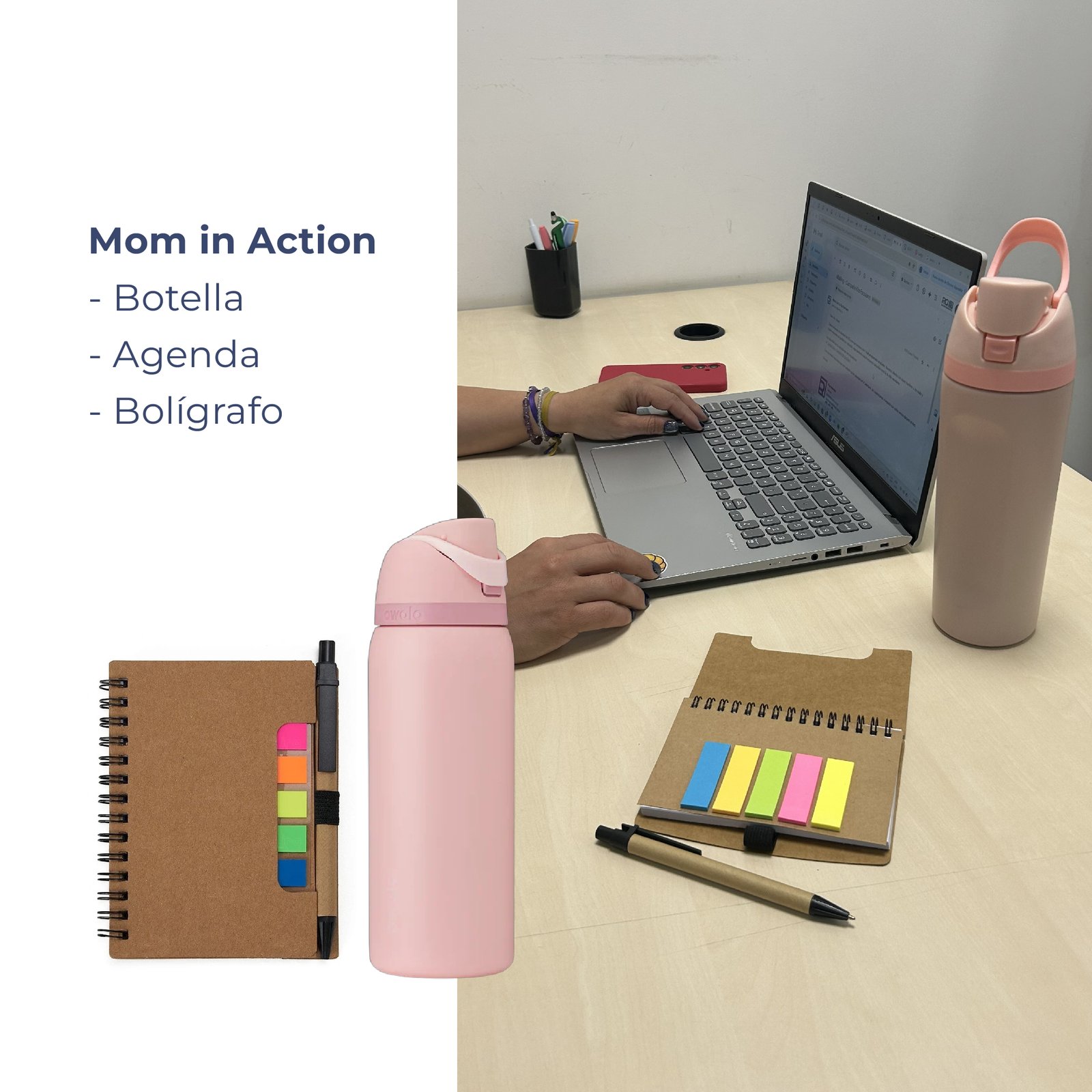 - KIT Mom in action: – Botellla Iguazú – Agenda – Bolígrafo