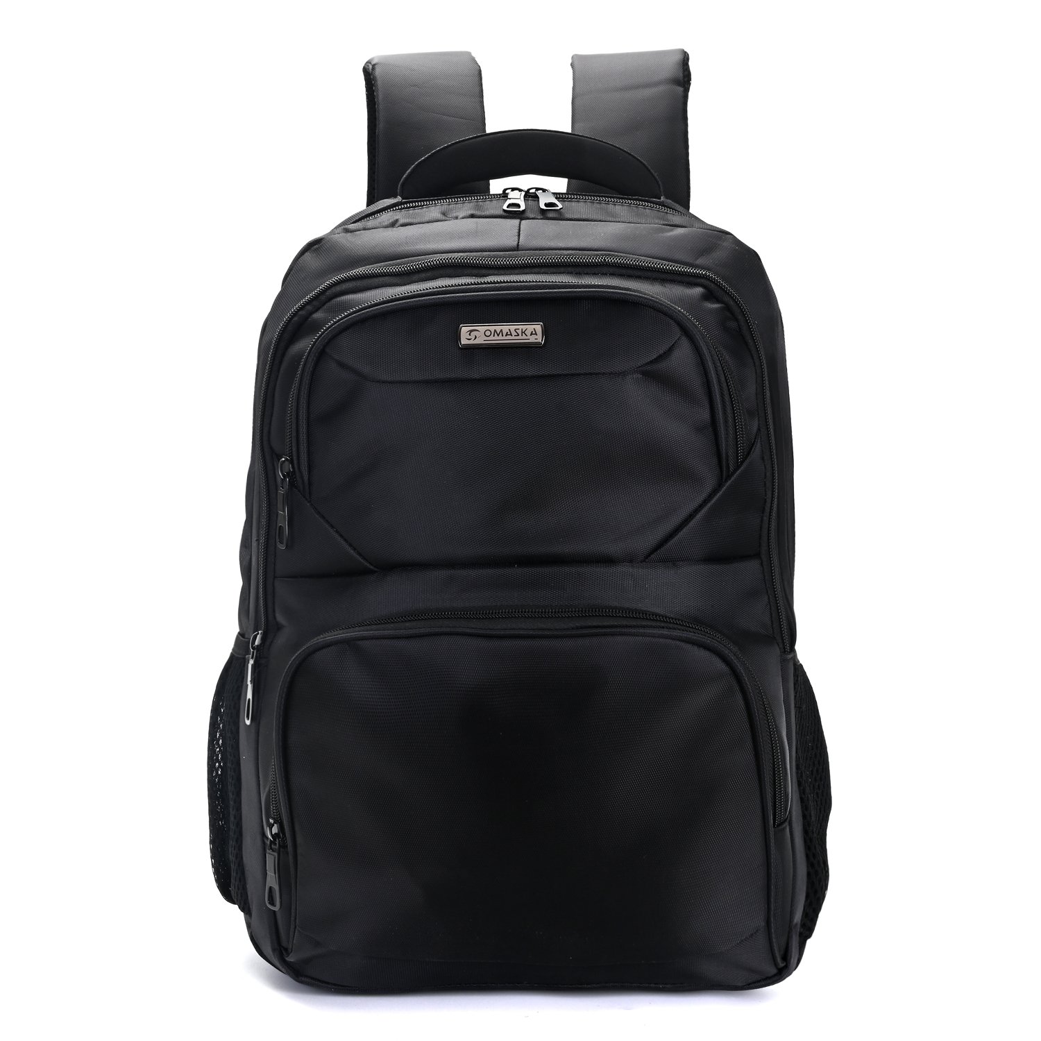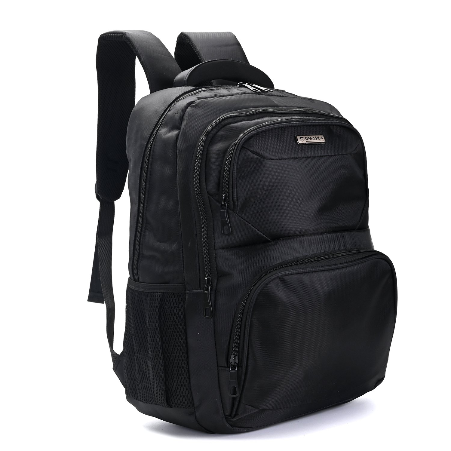 Mochilas empresariales de 18″ con dos amplias divisiones principales, dos bolsillos delanteros y dos bolsillos laterales de red. Interior forrado con división gruesa portanotebook. Espalda y tiras acolchonadas y reforzadas. Agarre superior robusto.