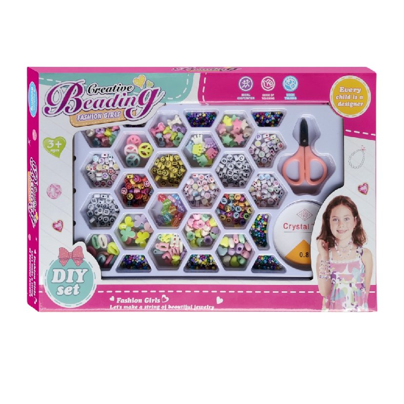 Set creativo para hacer pulseras. Permite diseñar sus propios accesorios de manera fácil, rápida y segura. Este set incluye variedad de mostacillas y herramientas para personalizar pulseras.